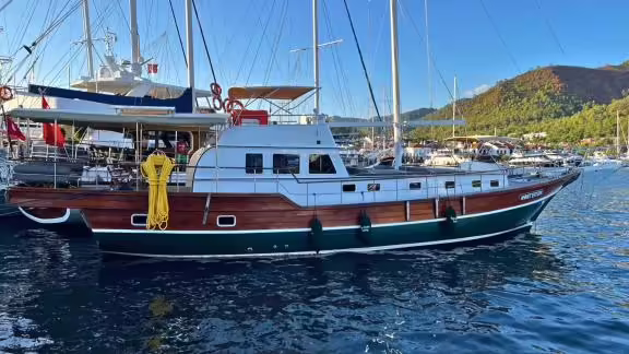 Das Gulet Ahmet Ertürk wurde 1989 gebaut und liegt an in Marmaris (Türkei). Selbstverständlich ist auf Anfrage die Yacht auch in anderen Städten für Sie verfügbar. Die Yacht besitzt eine Länge von 19.8 m, eine Breite von 5.2 m und besitzt einen Tiefgang von 2.6 m. Ahmet Ertürk ist mit seinen 4 Kabinen für bis zu 8 Personen ausgelegt und für diverse Tagesausflüge geeignet. Es gibt insgesamt 4 Badezimmer für Sie und Ihre Gäste. Die Yacht besitzt einen Motor mit einer Leistung von 160 PS (118 kW). Die Fahrgeschwindigkeit des Schiffes beträgt 8 Knoten (15 km/h). Während Ihres Aufenthaltes auf dieser Yacht wird Sie eine erfahrene Crew begleiten, die bereit ist, alle Ihre Wünsche zu erfüllen.