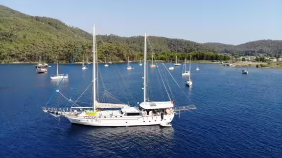 Das Gulet Cemre 4 wurde 2000 gebaut und liegt an in Bodrum (Türkei). Selbstverständlich ist auf Anfrage die Yacht auch in anderen Städten für Sie verfügbar. Die Yacht besitzt eine Länge von 30.5 m, eine Breite von 7.6 m und besitzt einen Tiefgang von 3.4 m. Cemre 4 ist mit seinen 9 Kabinen für bis zu 18 Personen ausgelegt und für diverse Tagesausflüge geeignet. Es gibt insgesamt 9 Badezimmer für Sie und Ihre Gäste. Die Yacht besitzt 2 Motoren mit jeweils einer Leistung von 440 PS (324 kW). Die Fahrgeschwindigkeit des Schiffes beträgt 10 Knoten (19 km/h). Während Ihres Aufenthaltes auf dieser Yacht wird Sie eine erfahrene Crew begleiten, die bereit ist, alle Ihre Wünsche zu erfüllen.