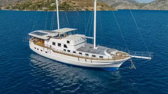 Das Gulet Dogukan Arda wurde 2023 gebaut und liegt an in Marmaris (Türkei). Selbstverständlich ist auf Anfrage die Yacht auch in anderen Städten für Sie verfügbar. Die Yacht besitzt eine Länge von 24 m, eine Breite von 7 m und besitzt einen Tiefgang von 2.8 m. Dogukan Arda ist mit seinen 6 Kabinen für bis zu 12 Personen ausgelegt und für diverse Tagesausflüge geeignet. Es gibt insgesamt 6 Badezimmer für Sie und Ihre Gäste. Die Yacht besitzt einen Motor mit einer Leistung von 450 PS (331 kW). Die Fahrgeschwindigkeit des Schiffes beträgt 8 Knoten (15 km/h). Während Ihres Aufenthaltes auf dieser Yacht wird Sie eine erfahrene Crew begleiten, die bereit ist, alle Ihre Wünsche zu erfüllen.