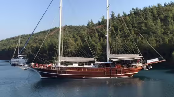 Das Gulet Galip Nur wurde 2006 gebaut und liegt an in Marmaris (Türkei). Selbstverständlich ist auf Anfrage die Yacht auch in anderen Städten für Sie verfügbar. Die Yacht besitzt eine Länge von 30 m, eine Breite von 7.3 m und besitzt einen Tiefgang von 3.5 m. Galip Nur ist mit seinen 6 Kabinen für bis zu 12 Personen ausgelegt und für diverse Tagesausflüge geeignet. Es gibt insgesamt 6 Badezimmer für Sie und Ihre Gäste. Die Yacht besitzt 2 Motoren mit jeweils einer Leistung von 450 PS (331 kW). Die Fahrgeschwindigkeit des Schiffes beträgt 9 Knoten (17 km/h). Während Ihres Aufenthaltes auf dieser Yacht wird Sie eine erfahrene Crew begleiten, die bereit ist, alle Ihre Wünsche zu erfüllen.