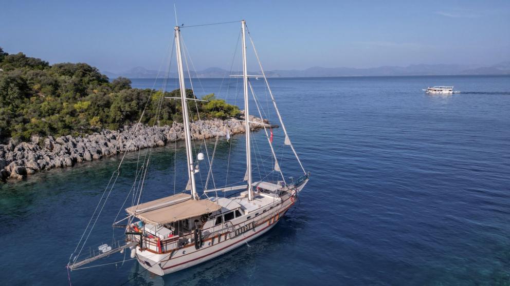Das Gulet Junior Tarkan wurde 2011 gebaut und liegt an in Fethiye (Türkei). Selbstverständlich ist auf Anfrage die Yacht auch in anderen Städten für Sie verfügbar. Die Yacht besitzt eine Länge von 20 m, eine Breite von 6 m und besitzt einen Tiefgang von 1.2 m. Junior Tarkan ist mit seinen 3 Kabinen für bis zu 6 Personen ausgelegt und für diverse Tagesausflüge geeignet. Es gibt insgesamt 3 Badezimmer für Sie und Ihre Gäste. Die Yacht besitzt einen Motor mit einer Leistung von 350 PS (257 kW). Die Fahrgeschwindigkeit des Schiffes beträgt 8 Knoten (15 km/h). Während Ihres Aufenthaltes auf dieser Yacht wird Sie eine erfahrene Crew begleiten, die bereit ist, alle Ihre Wünsche zu erfüllen.