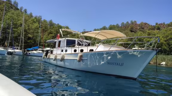 Das Gulet Nostalji wurde 1990 gebaut und liegt an in Göcek (Türkei). Selbstverständlich ist auf Anfrage die Yacht auch in anderen Städten für Sie verfügbar. Die Yacht besitzt eine Länge von 16 m, eine Breite von 5 m und besitzt einen Tiefgang von 1.55 m. Nostalji ist mit seinen 3 Kabinen für bis zu 6 Personen ausgelegt und für diverse Tagesausflüge geeignet. Es gibt insgesamt 3 Badezimmer für Sie und Ihre Gäste. Die Fahrgeschwindigkeit des Schiffes beträgt 8 Knoten (15 km/h). Während Ihres Aufenthaltes auf dieser Yacht wird Sie eine erfahrene Crew begleiten, die bereit ist, alle Ihre Wünsche zu erfüllen.