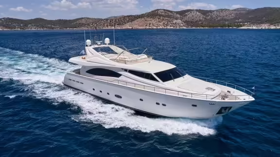 Estia Yi wurde 2004 gebaut und liegt an in Griechische Inseln (Griechenland). Selbstverständlich ist auf Anfrage die Yacht auch in anderen Städten für Sie verfügbar. Die Yacht besitzt eine Länge von 27.03 m, eine Breite von 6.72 m und besitzt einen Tiefgang von 1.81 m. Estia Yi ist mit seinen 4 Kabinen für bis zu 9 Personen ausgelegt und für diverse Tagesausflüge geeignet. Es gibt insgesamt 4 Badezimmer für Sie und Ihre Gäste. Die Yacht besitzt einen Motor mit einer Leistung von 2000 PS (1471 kW). Die Fahrgeschwindigkeit des Schiffes beträgt 19 Knoten (35 km/h). Während Ihres Aufenthaltes auf dieser Yacht wird Sie eine erfahrene Crew begleiten, die bereit ist, alle Ihre Wünsche zu erfüllen.
