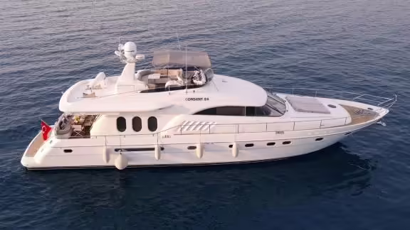 Die Motoryacht Consent 24 wurde 2007 gebaut und liegt an in Bodrum (Türkei). Selbstverständlich ist auf Anfrage die Yacht auch in anderen Städten für Sie verfügbar. Die Yacht besitzt eine Länge von 24 m, eine Breite von 5.7 m und besitzt einen Tiefgang von 0 m. Consent 24 ist mit seinen 4 Kabinen für bis zu 8 Personen ausgelegt und für diverse Tagesausflüge geeignet. Es gibt insgesamt 3 Badezimmer für Sie und Ihre Gäste. Die Yacht besitzt 2 Motoren mit jeweils einer Leistung von 1200 PS (883 kW). Die Fahrgeschwindigkeit des Schiffes beträgt 30 Knoten (56 km/h). Während Ihres Aufenthaltes auf dieser Yacht wird Sie eine erfahrene Crew begleiten, die bereit ist, alle Ihre Wünsche zu erfüllen.