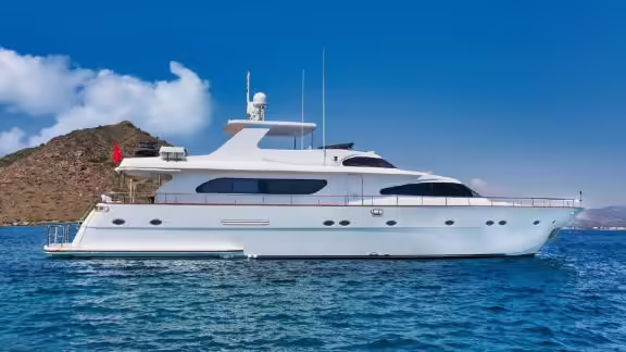 Die Motoryacht Julem 1 wurde 2002 gebaut und liegt an in Bodrum (Türkei). Selbstverständlich ist auf Anfrage die Yacht auch in anderen Städten für Sie verfügbar. Die Yacht besitzt eine Länge von 28 m, eine Breite von 6.5 m und besitzt einen Tiefgang von 1.4 m. Julem 1 ist mit seinen 4 Kabinen für bis zu 8 Personen ausgelegt und für diverse Tagesausflüge geeignet. Es gibt insgesamt 4 Badezimmer für Sie und Ihre Gäste. Die Yacht besitzt 2 Motoren mit jeweils einer Leistung von 1400 PS (1030 kW). Die Fahrgeschwindigkeit des Schiffes beträgt 10 Knoten (19 km/h). Während Ihres Aufenthaltes auf dieser Yacht wird Sie eine erfahrene Crew begleiten, die bereit ist, alle Ihre Wünsche zu erfüllen.