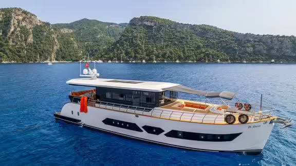 Die Motoryacht Junior Simay wurde 2025 gebaut und liegt an in Fethiye (Türkei). Selbstverständlich ist auf Anfrage die Yacht auch in anderen Städten für Sie verfügbar. Die Yacht besitzt eine Länge von 22 m, eine Breite von 6 m und besitzt einen Tiefgang von 2 m. Junior Simay ist mit seinen 3 Kabinen für bis zu 8 Personen ausgelegt und für diverse Tagesausflüge geeignet. Es gibt insgesamt 3 Badezimmer für Sie und Ihre Gäste. Die Yacht besitzt 2 Motoren mit jeweils einer Leistung von 360 PS (265 kW). Die Fahrgeschwindigkeit des Schiffes beträgt 10 Knoten (19 km/h). Während Ihres Aufenthaltes auf dieser Yacht wird Sie eine erfahrene Crew begleiten, die bereit ist, alle Ihre Wünsche zu erfüllen.