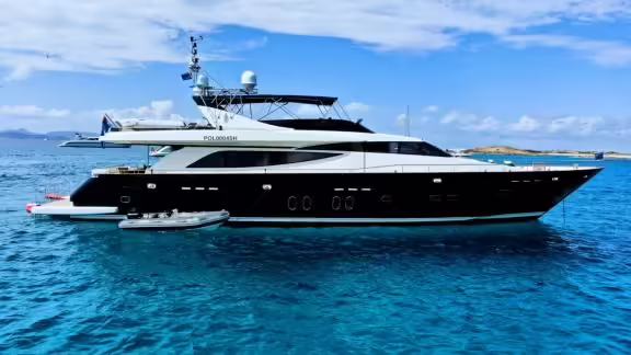 Die Motoryacht Usoa Bi wurde 2003 gebaut und liegt an in Ibiza (Spanien). Selbstverständlich ist auf Anfrage die Yacht auch in anderen Städten für Sie verfügbar. Die Yacht besitzt eine Länge von 30 m, eine Breite von 6.8 m und besitzt einen Tiefgang von 1.6 m. Usoa Bi ist mit seinen 4 Kabinen für bis zu 8 Personen ausgelegt und für diverse Tagesausflüge geeignet. Es gibt insgesamt 4 Badezimmer für Sie und Ihre Gäste. Die Yacht besitzt 2 Motoren mit jeweils einer Leistung von 1500 PS (1103 kW). Die Fahrgeschwindigkeit des Schiffes beträgt 27 Knoten (50 km/h). Während Ihres Aufenthaltes auf dieser Yacht wird Sie eine erfahrene Crew begleiten, die bereit ist, alle Ihre Wünsche zu erfüllen.