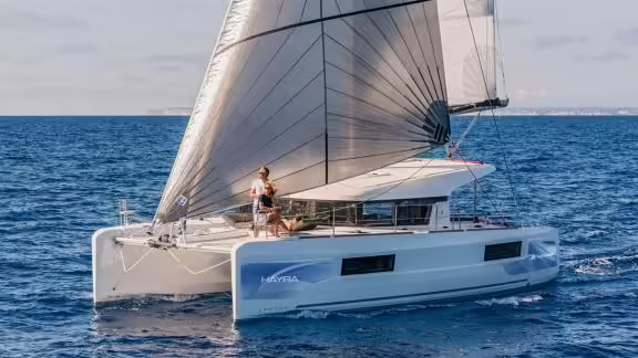 The Catamaran Hayra was built in 2021 and is moored in Fethiye (Turkey). Of course, the yacht is also available for you in other cities on request. The yacht has a length of 11.74 m, a beam of 6.76 m and a draught of 1.35 m. Hayra with its 4 cabins is designed for up to 8 people and is suitable for various day trips. There are 4 bathrooms for you and for your guests. The yacht has 2 engines, each with an output of 29 hp (21 kW).