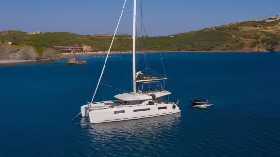 The Catamaran Nomad 2 was built in 2020 and is moored in Lavrion (Greece). Of course, the yacht is also available for you in other cities on request. The yacht has a length of 15 m, a beam of 8.1 m and a draught of 1.4 m. Nomad 2 with its 6 cabins is designed for up to 10 people and is suitable for various day trips. There are 4 bathrooms for you and for your guests. The yacht has 2 engines, each with an output of 80 hp (59 kW). The cruising speed of the vessel is 7 knots (13 km/h). During your stay on this yacht, you will be accompanied by an experienced crew ready to meet all your needs.