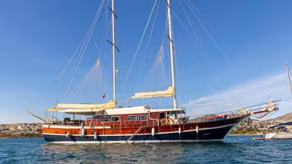 The Gulet Athen A was built in 2003 and is moored in Greek Islands (Greece). Of course, the yacht is also available for you in other cities on request. The yacht has a length of 32 m, a beam of 7 m and a draught of 3 m. Athen A with its 8 cabins is designed for up to 16 people and is suitable for various day trips. There are 8 bathrooms for you and for your guests. The yacht has 2 engines, each with an output of 400 hp (294 kW). The cruising speed of the vessel is 9 knots (17 km/h). During your stay on this yacht, you will be accompanied by an experienced crew ready to meet all your needs.