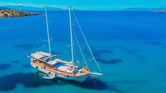 The Gulet Avrasya was built in 1997 and is moored in Bodrum (Turkey). Of course, the yacht is also available for you in other cities on request. The yacht has a length of 24 m, a beam of 6.2 m and a draught of 2.8 m. Avrasya with its 5 cabins is designed for up to 10 people and is suitable for various day trips. There are 5 bathrooms for you and for your guests. The yacht has 2 engines, each with an output of 300 hp (221 kW). The cruising speed of the vessel is 9 knots (17 km/h). During your stay on this yacht, you will be accompanied by an experienced crew ready to meet all your needs.