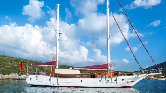 The Gulet Primadonna was built in 1998 and is moored in Bodrum (Turkey). Of course, the yacht is also available for you in other cities on request. The yacht has a length of 21.5 m, a beam of 5.7 m and a draught of 2.8 m. Primadonna with its 3 cabins is designed for up to 6 people and is suitable for various day trips. There are 3 bathrooms for you and for your guests. The yacht has an engine with an output of 400 hp (294 kW). The cruising speed of the vessel is 10 knots (19 km/h). During your stay on this yacht, you will be accompanied by an experienced crew ready to meet all your needs.
