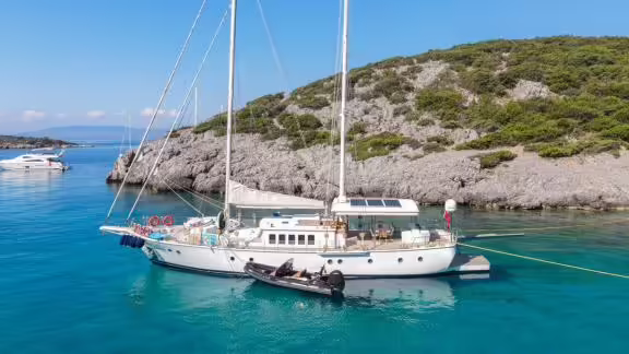 The Gazella was built in 2022 and is moored in Bodrum (Turkey). Of course, the yacht is also available for you in other cities on request. The yacht has a length of 25 m, a beam of 6.5 m and a draught of 2.4 m. Gazella with its 4 cabins is designed for up to 8 people and is suitable for various day trips. There are 4 bathrooms for you and for your guests. The yacht has 2 engines, each with an output of 285 hp (210 kW). The cruising speed of the vessel is 8 knots (15 km/h). During your stay on this yacht, you will be accompanied by an experienced crew ready to meet all your needs.