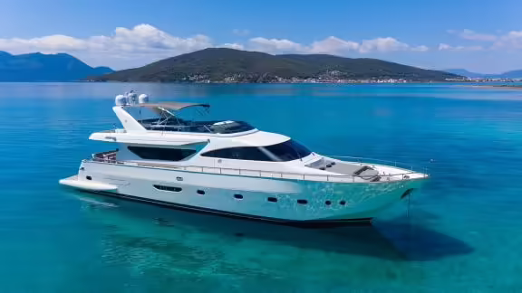 The Freedom was built in 2007 and is moored in Athens (Greece). Of course, the yacht is also available for you in other cities on request. The yacht has a length of 23.85 m, a beam of 5.8 m and a draught of 2.5 m. Freedom with its 4 cabins is designed for up to 10 people and is suitable for various day trips. There are 4 bathrooms for you and for your guests. The yacht has 2 engines, each with an output of 1650 hp (1214 kW). The cruising speed of the vessel is 23 knots (43 km/h). During your stay on this yacht, you will be accompanied by an experienced crew ready to meet all your needs.
