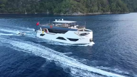 The Motor Yacht Nayk 3 was built in 2023 and is moored in Göcek (Turkey). Of course, the yacht is also available for you in other cities on request. The yacht has a length of 28 m, a beam of 7.2 m and a draught of 1.2 m. Nayk 3 with its 6 cabins is designed for up to 12 people and is suitable for various day trips. There are 6 bathrooms for you and for your guests. The yacht has 2 engines, each with an output of 450 hp (331 kW). The cruising speed of the vessel is 12 knots (22 km/h). During your stay on this yacht, you will be accompanied by an experienced crew ready to meet all your needs.