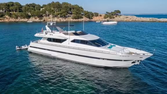 The Motor Yacht Paladio was built in 1993 and is moored in Mallorca (Spain). Of course, the yacht is also available for you in other cities on request. The yacht has a length of 24.38 m, a beam of 6 m and a draught of 1.9 m. Paladio with its 4 cabins is designed for up to 8 people and is suitable for various day trips. There are 4 bathrooms for you and for your guests. The yacht has 2 engines, each with an output of 900 hp (662 kW). The cruising speed of the vessel is 9 knots (17 km/h). During your stay on this yacht, you will be accompanied by an experienced crew ready to meet all your needs.