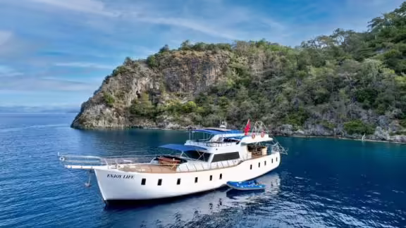 Enjoy Life adlı Gulet 2019 yılında inşa edilmiştir ve Fethiye (Türkiye) demirlemiştir. Tabii ki, yat talep üzerine diğer şehirlerde de sizin için kullanılabilir. Yat 24 m uzunluğa, 6.8 m genişliğe ve 3 m su çekimine sahiptir. Enjoy Life, 6 kabini ile 12 kişiye kadar tasarlanmıştır ve çeşitli günlük geziler için uygundur. Siz ve misafirleriniz için toplam 6 banyo bulunmaktadır. Yatta 422 hp (310 kW) gücünde bir motor bulunmaktadır. Geminin azami hızı 13 knot'tır (24 km/sa). Bu yatta kaldığınız süre boyunca size tüm ihtiyaçlarınızı karşılamaya hazır deneyimli bir mürettebat eşlik edecektir.